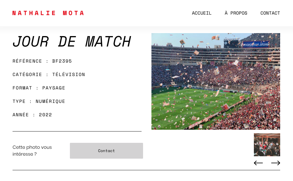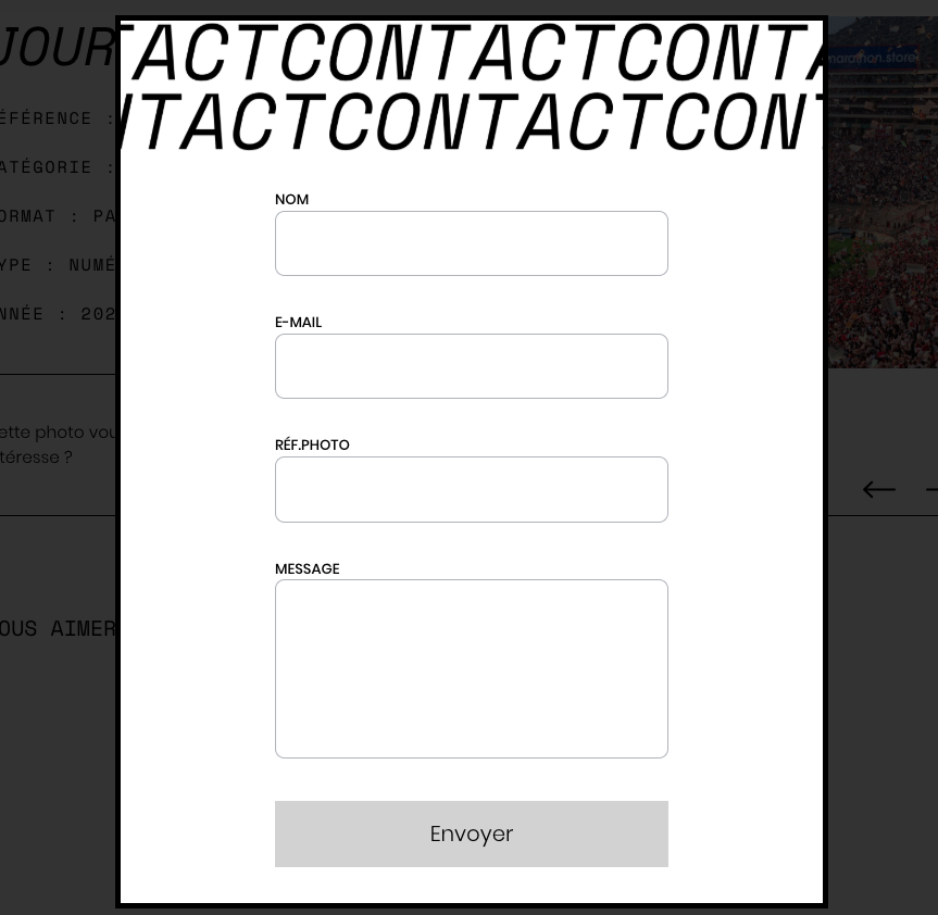 - Intégrer une modale de contact permettant de préremplir automatiquement la référence de la photo sélectionnée.